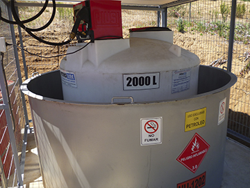DESCRIPCIÓN: INSTALACIÓN DE TANQUE DE ALMACENAMIENTO PARA PETRÓLEO DIESEL DE 2.000 L DE SUPERFICIE CON PRETIL DE CONTENCIÓN CON BOMBA DE TRASVASE PARA SUMINISTRO DE COMBUSTIBLE A GENERADOR ELÉCTRICO DE RESPALDO